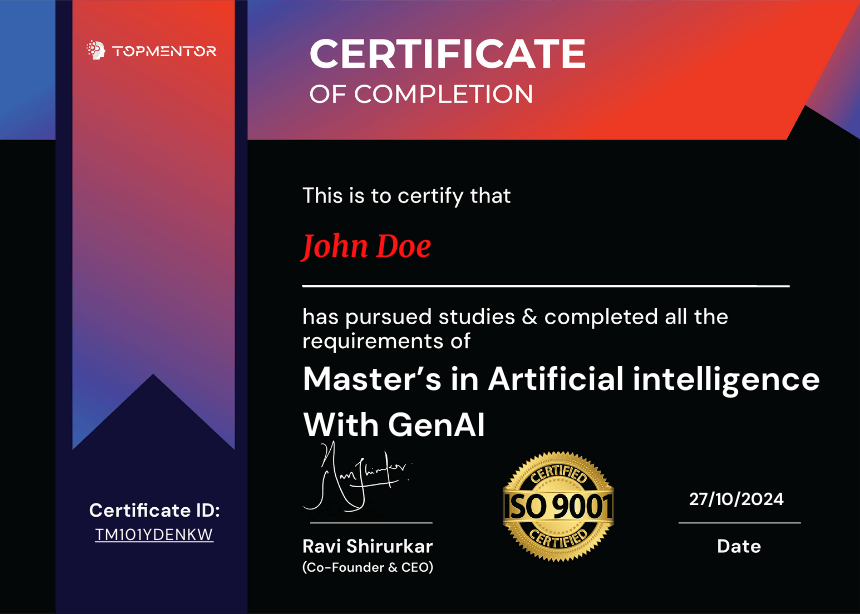 TopMentor flaunts a staggering 98% placement rate within 6 months. You will get 100% job assistance after the end of the course. We have tie ups with placement agencies, HR’s and companies with requirements in Data & AI field. It helps you get more interviews and easier placements. You will get placement calls from city of your choice.